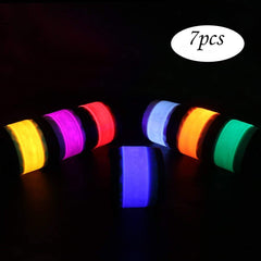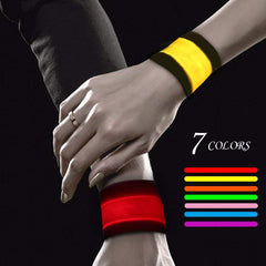 PROLOSO Pack of 7 LED Light Up Band Slap Bracelets Night Safety Wrist Band for Running Man Riding Walking Concert Party Camping Outdoor Sports with 8 Extra Button Battery