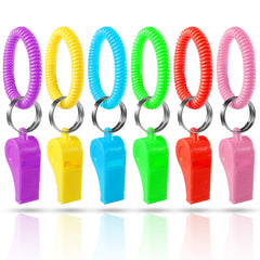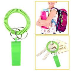 - 3 IN 1 DESIGN - One purchase to get spiral wristbands + whistles + key rings. Come in a pack of 2 dozen, enough for handouts or giveaways.