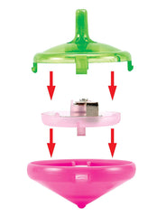 - Sparkling red LED light. The faster the tops spin, the brighter the light is.