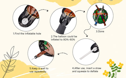 Easy inflation and deflation. Theses adorable party balloons can be filled with air or helium. Please don't inflate the balloon excessively to avoid air leakage or breakage. (80%-90% is OK).