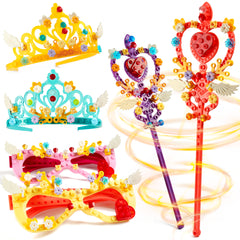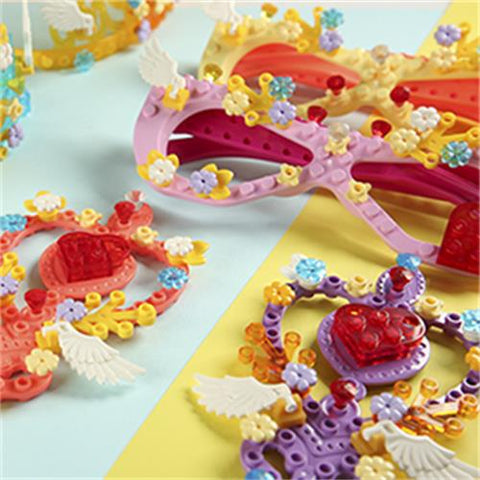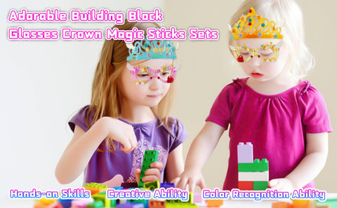 - Package: 2×glasses, 2×crowns, 2×magic sticks, and 6 packets of building blocks.