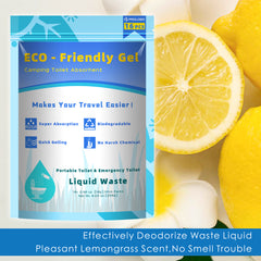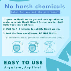 - The portable toilet gel will rapidly absorb and gel urine or liquid waste in portable toilet bags. The liquid waste and unpleasant smell will be locked in the gel.