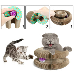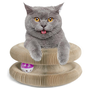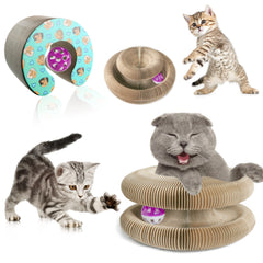 PROLOSO Magic Organ Cat Scratcher with Bell Ball Cats Grinding Claw Scratching Board Indoors Foldable Convenient Recyclable Cardboard