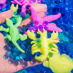 - ADD WATER AND STAND BACK! – These 2’’ sea creatures expand in size up to 300% when they are in water, almost like magic! Let your child play with these gigantic creatures while giving them their daily bath or while playing outside in the pool or fountain! And 10000PCS Blue water beads let the ocean animals could growing in the sea. The possibilities are endless!