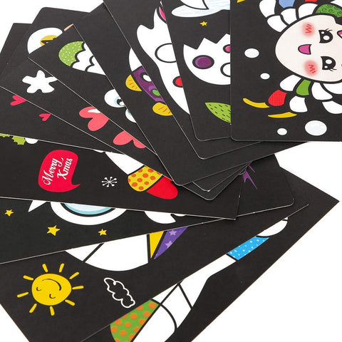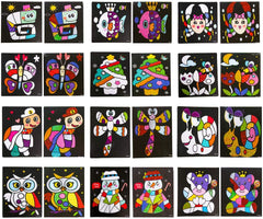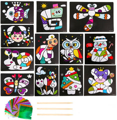 GREAT VALUE: You will get 12 painting boards with different cartoon patterns, 30 colorful stickers and 3 sticks packed in a beautiful sturdy box.