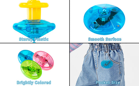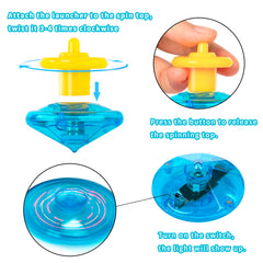 • The bright colors of glowing gyroscopes toys are helpful for children's color cognitive development, and also exercise their motor skills while playing with flashing spinning tops.