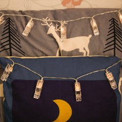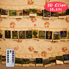 - 50 CLIPS: 16.4Ft in total. 50 crystal clips with warm white lights to display 50 postcards, photos or other small Items in living room, bedroom, or other places to create an excellent illumination and warm atmosphere. A romantic way to recall your unforgettable and wonderful moment.