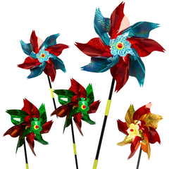 - The blades of sparkly pinwheels are made of thickened PET, can reflect nicely and durable in rainy/windy day. Lightweight pinwheels are easy to move and place wherever you want.