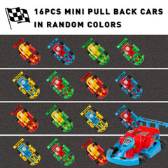 PROLOSO 16PCS Mini Go Karts Wind Up Car Assorted Little Pull Back Friction Powered Cars Themed Party Favors Kids Vehicle Toy Classroom Prizes Treasure Box Treat Bag Fillers