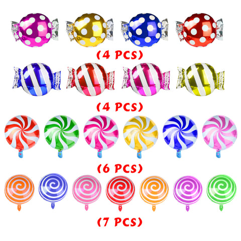 - PACKAGE INCLUDES: 21 pieces different styles and colors candy balloons,patterns as showed in picture.
