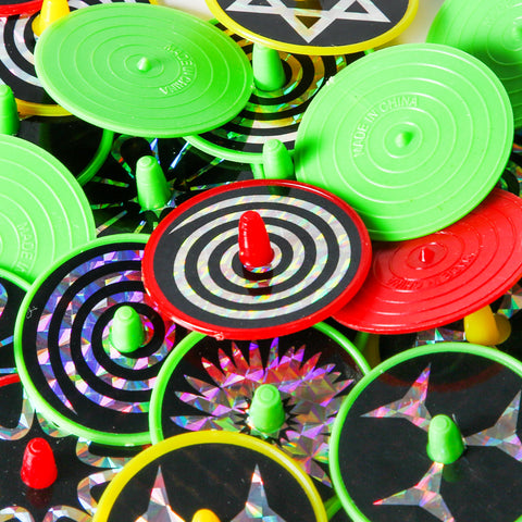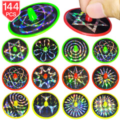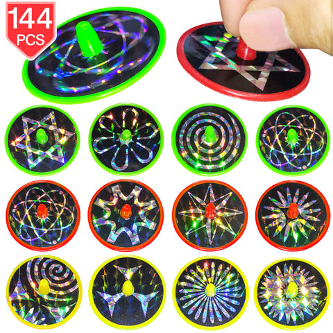 - VALUE PACK: A fairly cheap price to get 144 pcs little spin toys with bright color and sparkling metallic color stickers.