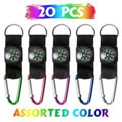 PROLOSO Carabiner Compass Keychain Belt Clips Kids Toys Prizes Outdoors Adventure Party Favors 20 Pcs