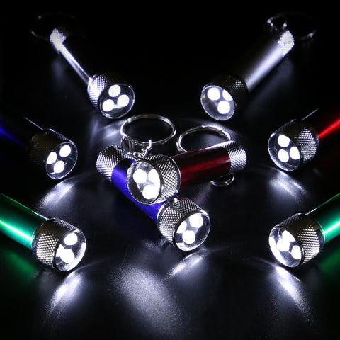 - PORTABLE & BRIGHT: These little torches are small enough to fit on a keychain, and strong enough to look for a dropped item at night or check your footing. Three bulbs included in each led torch also ensure it bright enough for evening wedding, night walking and sleepover.