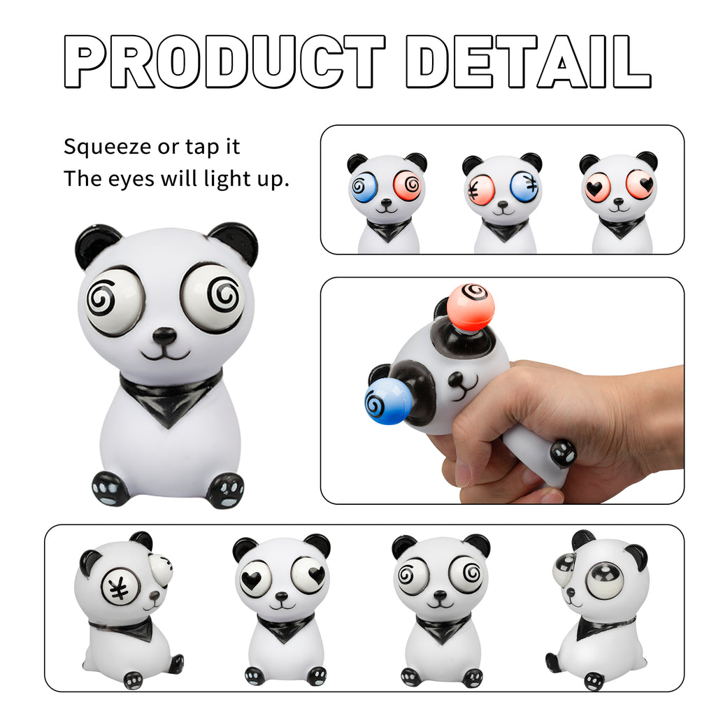 - The eyes of panda squeeze toys will bulge out and light up when you squeeze, and they will retract to their original position when you release and the light will turn off automatically. (Note: one of them can't light up.)